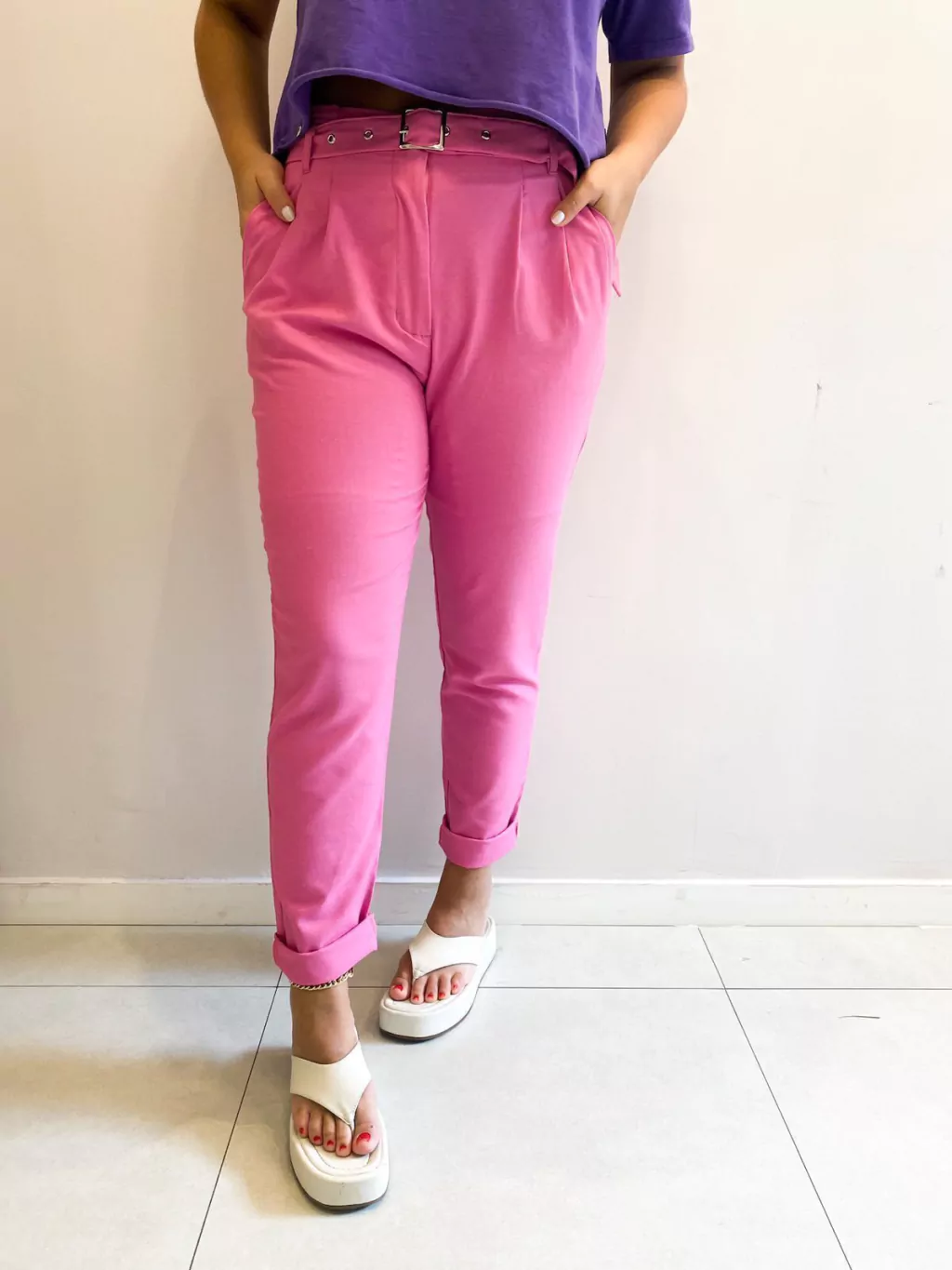 Calça Grace confeccionada em linho, possui modelagem cenoura em cintura alta com passante para cinto que acompanha do mesmo tecido, pregas frontais que alinham a cintura e quadril, com bolsos tipo faca funcionais que caracterizam o utilitarismo.
